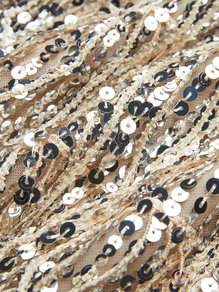 Adding sequins to the edges and using fringed sequin fabric creates a harmonious contrast, further enhancing the luxurious appearance